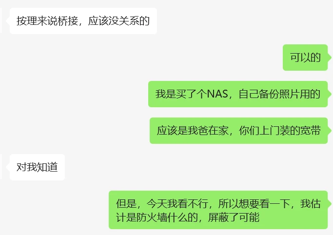 因为家里的网络还有我的父母在使用,而且受到家里已经存在的布线等因素的约束,我也不方便变更太多,或者说懒得改动太多(等以后有自己的house了可以再整一整)。而且如果把光猫改成桥接,又会影响到另外几个墙面网关的网络,所以基本只能把路由器改成桥接模式。