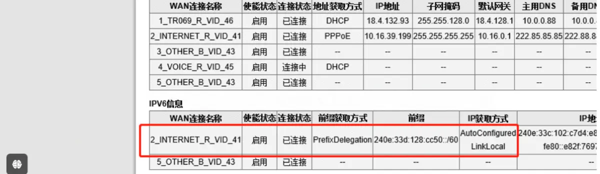图中的ipv6就是一个通过DHCP分配的内网IPV6地址,同样可以访问外部的ipv6网络,但如果要访问这台内部设备,则可能需要额外进行一些网络映射等类似的操作。