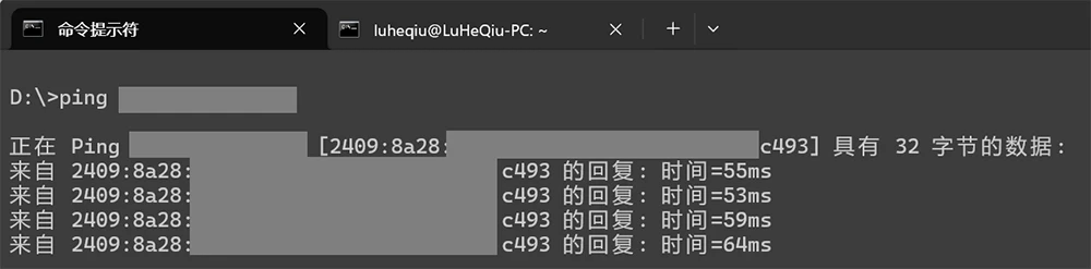 对于被访问设备来说,要复杂一点,必须得被分配到公网ipv6地址,例如电信公网ipv6的是240e开头,联通2408开头,移动2409开头。