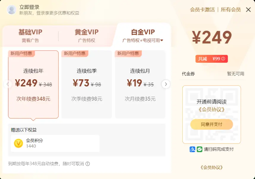 各个平台的会员价格